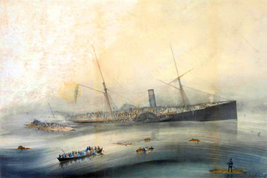 27 сентября 1854 года на пути из Ливерпуля в Нью-Йорк, пароход «Арктик» столкнулся в тумане с французским пароходом «Веста» у побережья Ньюфаундленда и, спустя 4 часа, затонул. Общая вместимость шлюпок составляла около 180 человек, чуть меньше половины количества людей на борту Шлюпки были спущены в панике и беспорядке, а принцип «Сначала женщины и дети» был проигнорирован. Из 400 человек на борту выжили 24 пассажира мужского пола и 61 член экипажа, все женщины и дети погибли.