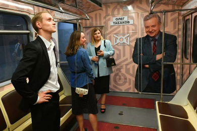 12 сентября 2019 года в метро Москвы запущен тематический поезд, посвящённый артисту Олегу Табакову, состав будет курсировать на Калужско-Рижской линии. Во внешнем оформлении поезда использованы изображения фрагментов витражей новой сцены и размещены портреты Табакова в образах, созданных им в театре, кино и мультипликации.