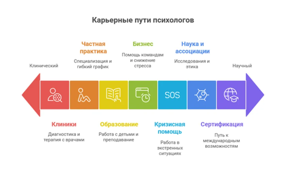В программах топовых вузов акцент на психологической помощи, включая кризисные ситуации. Эти навыки применимы везде, от клиник до онлайн-консультирования. Выпускники превращаются в психологов-практиков, готовых к реальным вызовам.