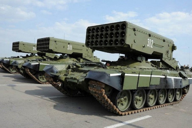 РСЗО Буратино - тяжелая огнеметная система залпового огня. Комплекс разрабатывался в Конструкторском бюро транспортного машиностроения совместно с Научно-исследовательским институтом физических проблем, отвечавшим за бортовую аппаратуру. Буратино включает в себя боевую машину - пусковую установку с пакетом из 30 направляющих на шасси танка Т-72 и транспортно-заряжающую машину на шасси КрАЗ-255Б. Огнеметная система предназначена для вывода из строя легкобронированной и автомобильной техники, поджога и разрушения сооружений и зданий, уничтожения живой силы противника, расположенной на открытой местности и в фортификационных сооружениях, осколками, ударной волной, создаваемыми на площади цели при массированном применении неуправляемых реактивных снарядов в термобарическом и дымозажигательном снаряжении. Состоит на вооружении России, Армении, Азербайджана, Ирака, Казахстана, Саудовской Аравии и Сирии.