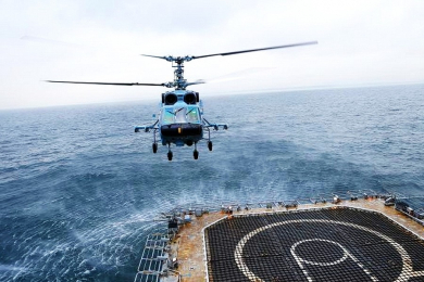 Российский транспортно-боевой корабельный вертолет - Ка-29. Предназначен для десантирования с кораблей подразделений морской пехоты и огневой поддержки высаженного личного состава. В транспортном варианте вертолет способен взять на борт 16 бойцов с оружием, или 10 раненых, включая четырех на носилках. При необходимости на вертолете возможна установлена лебедки грузоподъемностью до 300 килограмм. Вооружение состоит из встроенного четырехствольного подвижного пулемета калибра 7,62 мм с боезапасом 1800 патронов. В дополнение к пулемету, на борту размещаются универсальные пушечные контейнера УПК-23-250 с двухствольной пушкой калибра 23 мм. Так же вертолет снаряжается различным ракетно-бомбовым вооружением.