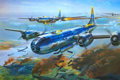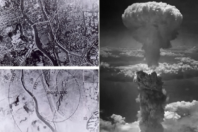 Американский самолет B-29 «Энола Гэй», пилотируемый Полом Тиббетсом и бомбардиром Томом Фереби, 6 августа 1945 года, сбросил атомную бомбу «Малыш» на японский город Хиросиму. Это было первое в истории человечества боевое применения ядерного оружия. Значительная часть города была разрушена, в за первые полгода умерли около 140 000 человек.