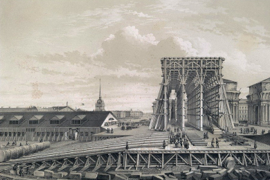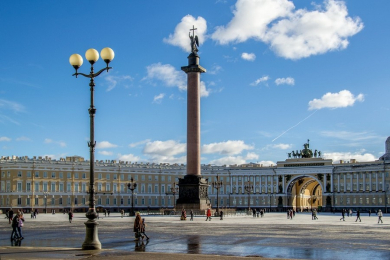 Александровская колонна на Дворцовой площади в Петербурге.