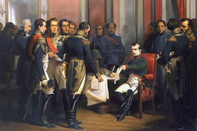 Александр считал Наполеона символом законности мирового порядка. Но российский император переоценил свои возможности, что и привело к катастрофе под Аустерлицем в ноябре 1805 года, причем присутствие императора в армии, его неумелые распоряжения имели самые пагубные последствия. Подписанный в июне 1806 года мирный трактат с Францией Александр отказался ратифицировать, и лишь поражение под Фридландом в мае 1807 года вынудило российского императора пойти на соглашение.