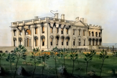Белый дом был сожжен британскими войсками 24 августа 1814 года в ходе англо-американской войны. Солдаты подожгли дом президента и ночью подбрасывали топливо в огонь, чтобы быть уверенными, что пожар будет продолжаться и на следующий день. По сообщениям очевидцев событий, дым виден был из Балтимора и с берегов реки Патаксент.