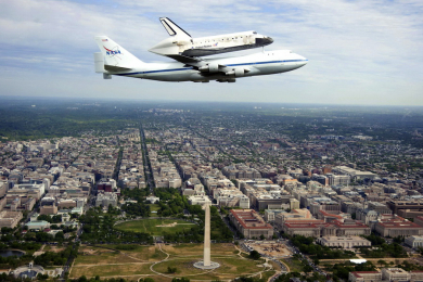 Специально оборудованный Боинг 17 апреля 2012 года доставил шаттл с космодрома на мысе Канаверал в Вашингтонский аэропорт имени Даллеса. Отсюда шаттл доставили в филиал Национального музея авиации и космонавтики Смитсоновского института.