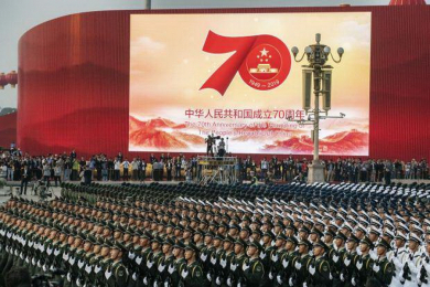 На центральной площади Тяньаньмэнь в Пекине 1 октября 2019 года прошли мероприятия в честь 70-летия образования Китайской Народной Республики. На трибуну ведущих к Запретному городу Ворот Тяньаньмэнь поднялись председатель КНР Си Цзиньпин, премьер Госсовета Ли Кэцян, другие члены руководства страны, а также бывший глава страны Цзян Цзэминь. Под 70 залпов орудий знаменная группа почетного караула Народно-освободительной армии вынесла на площадь флаг КНР, после чего сводный военный оркестр исполнил государственный гимн.