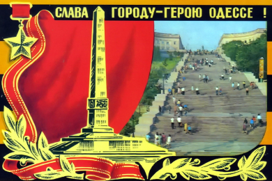 Приказом Верховного Главнокомандующего 1 мая 1945 года Одесса была объявлена городом-героем, 8 мая 1965 года указом Президиума Верховного Совета СССР за выдающиеся заслуги перед родиной, мужество и героизм, проявленные трудящимися города в борьбе с немецко-фашистскими захватчиками, город-герой Одесса был награжден орденом Ленина и медалью «Золотая Звезда.
