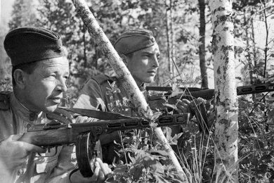 Красноармеец-снайпер тов. Доценко за два дня уничтожил 19 гитлеровцев.