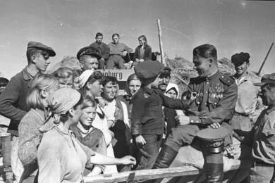 На днях наши войска, расположенные в районе Пропойск, перешли в наступление против немецко-фашистских войск. Успешно форсировав реки Сож и Проня, наши войска за три дня упорных боёв прорвали сильно укреплённую оборонительную полосу противника протяжением по фронту 60 километров.