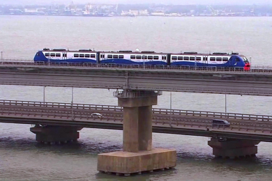 Мост строился параллельным способом: пока в одном месте возводились металлоконструкции, в другом сооружались опоры. Их соединение проводилось методом «надвижки» со скоростью всего 20 см в час. 15 мая 2018 года была торжественно открыта автодорожная часть, а в декабре 2019 года – железнодорожная. Общая стоимость проекта составила 227,92 миллиарда рублей. Протяженность транспортного перехода достигла 19 километров, что сделало его рекордсменом.