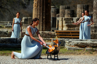 12 марта 2020 года в древней Олимпии состоялась церемония зажжения огня Олимпийских Игр в Токио. На церемонии присутствовали официальные лица, в их числе президент Греции Прокопис Павлопулос и глава МОК Томас Бах. Мероприятие прошло без зрителей из-за угрозы коронавируса. Огонь был зажжен при помощи параболического зеркала от солнечных лучей на алтаре храма Геры верховной жрицей, роль которой исполнила актриса Ксанти Георгиу. После этого на территории храма состоялось театрализованное представление с участием группы жриц, исполняющих обряд, созданный на основе древних традиций с привнесением современных элементов.