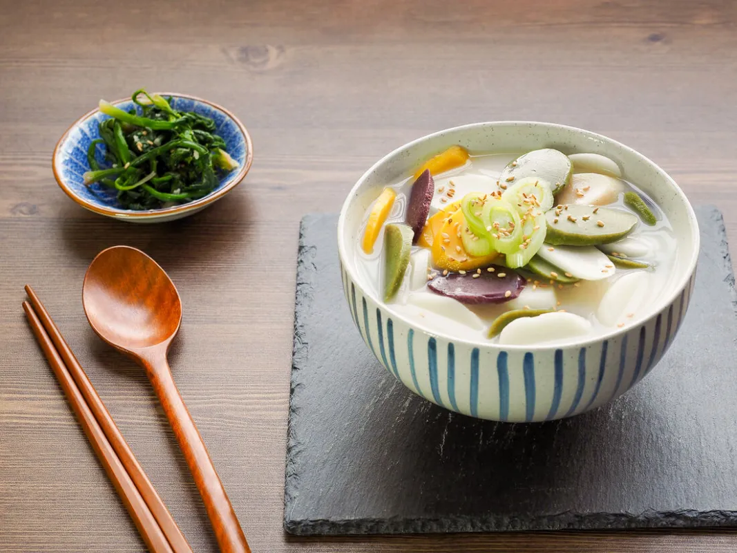 В утро праздника принято есть ттоккук - традиционный суп с рисовыми клецками. Человек, который закончил миску ттоккука, считается ставшим на год старше. Одна из форм осведомления о возрасте у корейцев — «сколько мисок ттоккука вы съели»