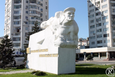 Монумент расположен на пересечении проспекта Ленина и бульвара Черняховского. Представляет из себя композицию: небольшая озелененная площадка, на которой стоит монолитный каменный постамент с изображенной фигурой Матроса с гранатой, рядом расположился большой противотанковый еж из металлических рельс.