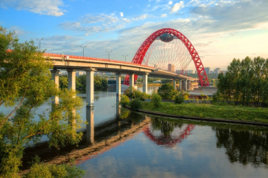 Живописный мост - вантовый мост через Москву-реку, самый высокий мост данного типа в Европе. Входит в состав Краснопресненского проспекта и проспекта Маршала Жукова. Получил название по находящейся рядом Живописной улице. Открыт 27 декабря 2007 года. Автор проекта - архитектор Николай Шумаков.