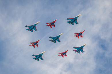 «Русские Витязи» - авиационная группа высшего пилотажа Военно-воздушных сил России. Обладатель ряда мировых рекордов. Группа была сформирована 5 апреля 1991 года на базе 1-й авиационной эскадрильи 234-го гвардейского Проскуровского смешанного авиационного полка 16-й воздушной армии, базировавшегося на подмосковном аэродроме Кубинка.
