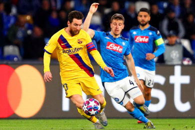 25 февраля 2020 года в матче 1/8 финала Лиги Чемпионов «Барселона» сыграла в ничью на выезде с «Наполи». В стартовые 45 минут преимуществом владели хозяева поля, при этом, испанцы чуть больше держали мяч, но до остроты в чужой штрафной дело не доходило. На 30-й минуте встречи счет открыл форвард итальянской команды Дрис Мертенс 1:0. Гости забили ответный мяч во втором тайме, отличился нападающий сине-гранатовых Антуан Гризманн 1:1. До конца матча обе команды имели возможность забить, но счет больше не изменился.
