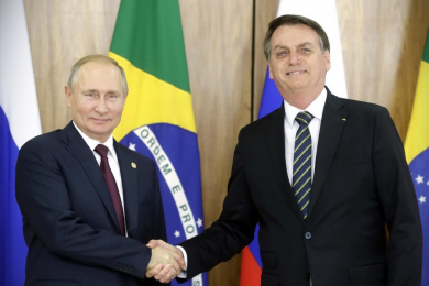 Российский лидер 14 ноября 2019 года в Бразилии провел встречу с Президентом Бразилии Жаиром Болсонару. Во время беседы обсуждалось сотрудничество двух стран. По словам Путина, на долю Бразилии приходится более 30% объема российской торговли с Латинской Америкой. В 2018-м году товарооборот двух стран составил $5 млрд. Путин добавил, что Россия покрывает все потребности Бразилии в титане, а также 17% потребностей в калийных удобрениях. Накопленные российские капиталовложения в экономику Бразилии составляют около $1,5 млрд.