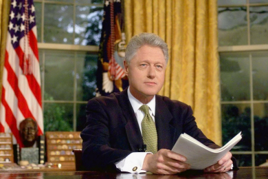 Пост президента США Билл Клинтон занял 20 января 1993 года. Первый президентский срок ознаменовался как успехами, так и неудачами. Запланированная реформа здравоохранения провалилась, также не удалось воплотить в жизнь инициативу по разрешению гомосексуалистам служить в армии. С другой стороны, президент добился ряда успехов на внешнеполитическом поприще. Было подписано Североамериканское соглашение о свободной торговле, заключены Дейтонские мирные соглашения по урегулированию балканского конфликта, а также мирное палестино-израильское соглашение.
