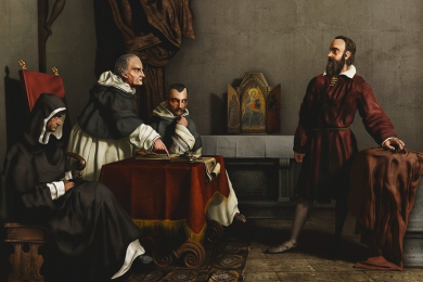 В 1616 году одиннадцать видных богословов рассмотрели учение Коперника и пришли к выводу о его ложности. Галилея вызвали из Флоренции в Рим и потребовали прекратить пропаганду еретических представлений об устройстве мира. Галилей вынужден подчиниться.