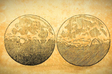 Первым светилом, которое Галилей подробно изучил с помощью нового прибора, стала Луна. На основе оптических наблюдений за спутником Земли 30 ноября 1609 года ученый нарисовал первую карту Луны, обнаружив множество гор и кратеров на ее поверхности.