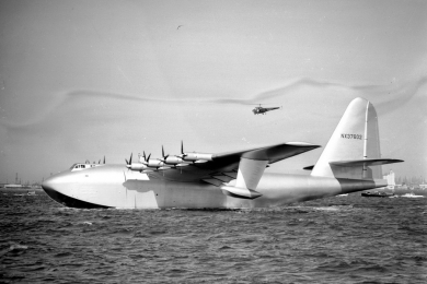 Самый знаменитый проект Говарда в области авиастроения - это летающий корабль Н-4 «Геркулес», или «Еловая гусыня». Во время Второй мировой войны металл был труднодоступен, и свой самолет Хьюз сделал почти полностью из дерева, правда, не из ели, а из березы. Размах крыльев составил почти 100 метров, то есть больше футбольного поля. Этот самолет был и остается самым большим в истории авиации. 2 февраля 1947 года Хьюз собственноручно поднял «Еловую гусыню» в воздух. Один из его коллег впоследствии заметил: «Можете не сомневаться, Говард настоящий гений. С чертовски большими странностями, но гений».