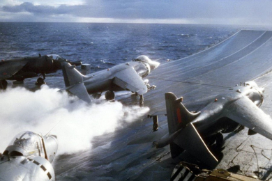 Аргентинский десант 2 апреля 1982 года высадился на британских Фолклендских островах, спровоцировав начало Фолклендской войны. Наступивший кризис, как показала история, стал ключевым событием в годы премьерства Тэтчер. По предложению Гарольда Макмиллана и Роберта Армстронга, Маргарет стала создателем и председателем военного кабинета, который к 5-6 апреля этого же года поставил перед военно-морским флотом Великобритании задачу вернуть контроль над островами. Аргентинские военные 14 июня 1982 года сдались, а военная операция завершилась успехом для британской стороны, хотя в ходе конфликта было убито 255 британских военных и три жителя Фолклендских островов. Аргентинская сторона потеряла 649 человек.